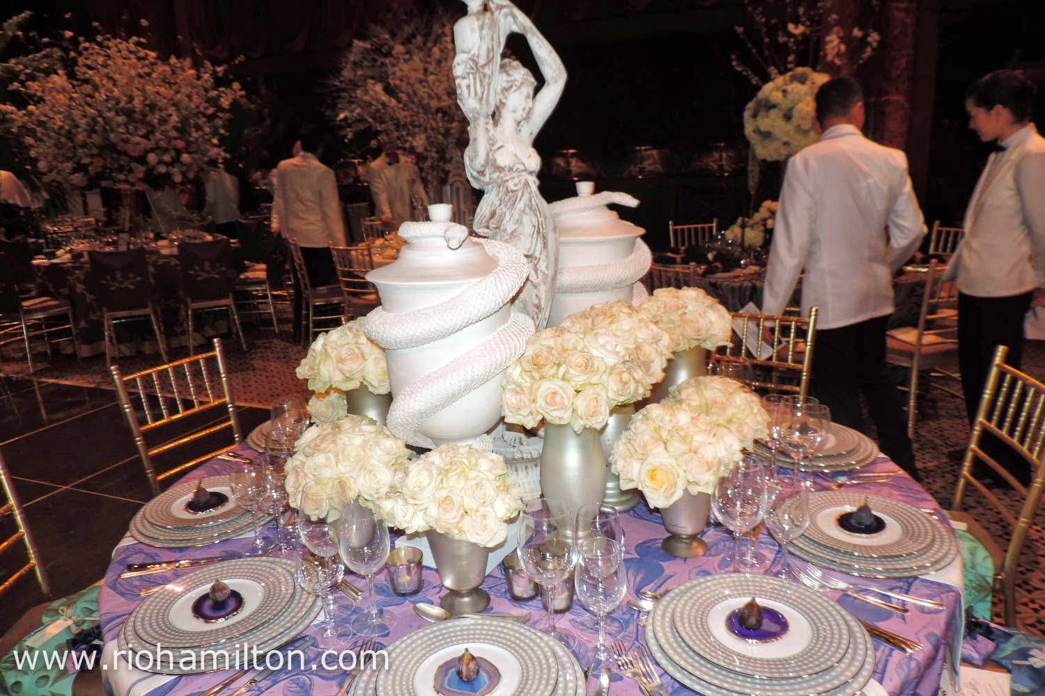 I arrived early this year. Cipriani 42nd Street is a grand venue for large, sophisticated events. The “Garden of Eden” table displays were created by well known interior designers each providing their own interpretation to the theme. More than 600 guests who would arrive within the next hour to dine at decorated round tables adorned with magnificent flowers, snakes, apples, semi-nude models (Adam and Eve) and lush green leaves with wilderness branches. There was also a dance floor in the 13,000 sq. ft. party room.